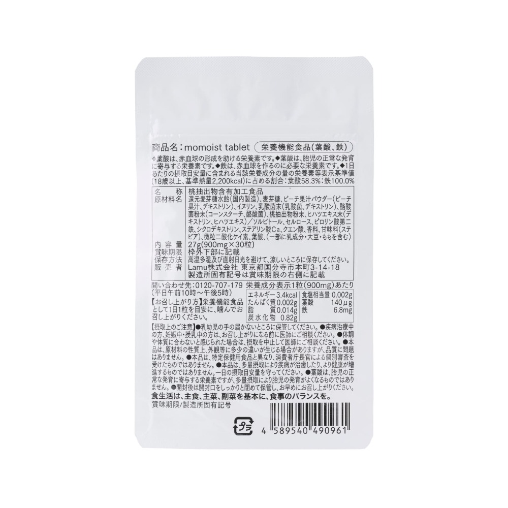 momoist tablet【栄養機能食品(葉酸、鉄)】